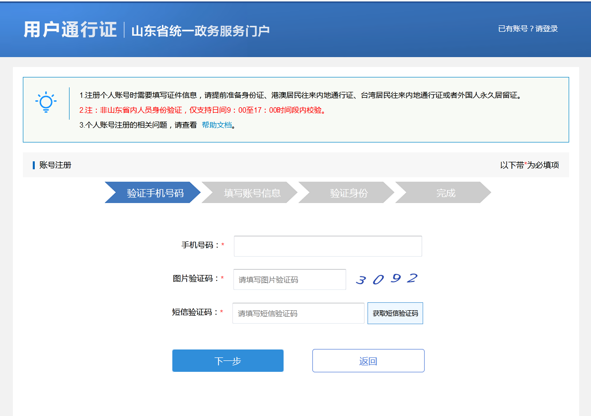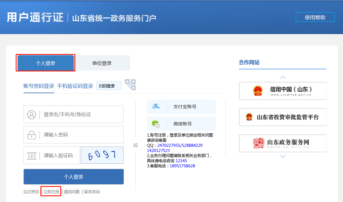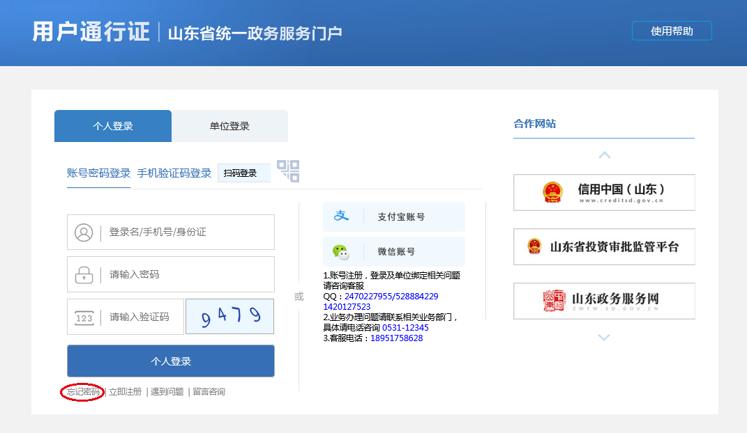 山东政务服务网个人账号支持用户名、手机号、身份证号码登录,因账号注册时已关联用户名、手机号、身份证号码三者信息,若忘记登录名,也可以使用手机验证码登录或身份证号码登录;若同时忘记登录名和注册手机号,也可使用身份证号码登录系统。