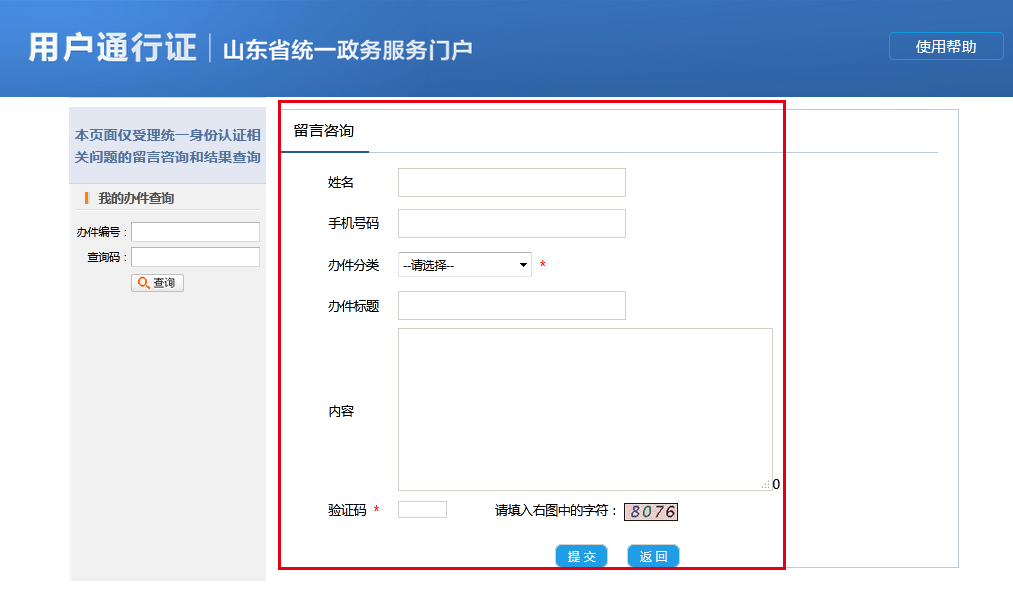 4.留言咨询:如果以上方法均没有解决您的问题,您也可以在账号登录界面中点击“留言咨询”,根据提示信息填写姓名、手机号码、办件类型、问题内容,然后提交,等待业务人员回复(一般会在2个工作日内收到回复)。