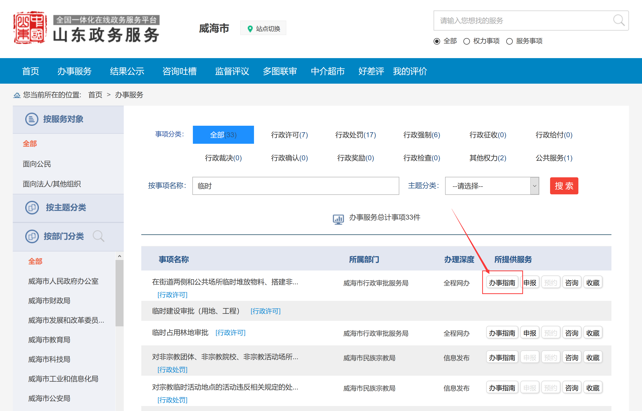 1.在山东政务服务网(威海站)点击“办事服务”模块。