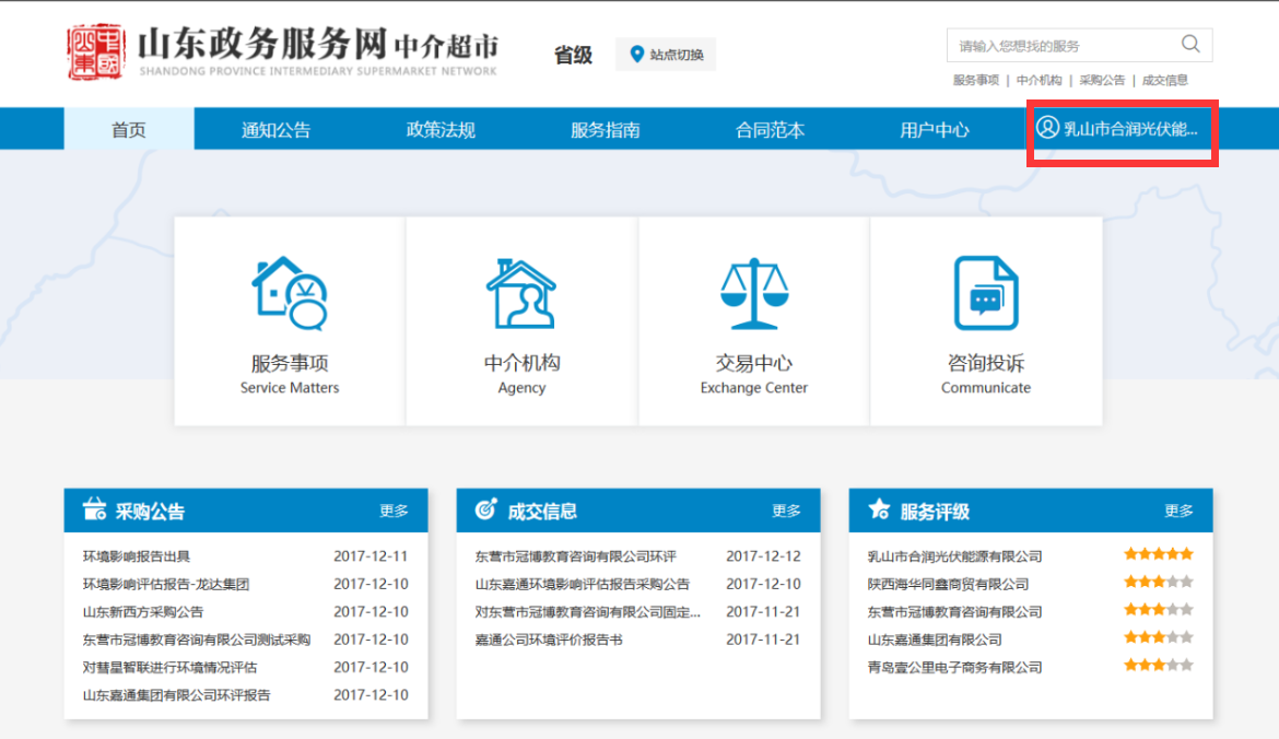 登录后,在选择用户界面选择办事用户(见图3),即可进入到山东省政务服务网-中介超市中。
