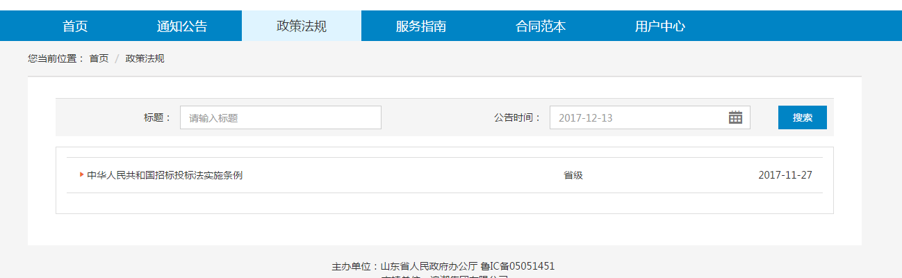 “政策法规”页面用于展示政府制定的政策性文件以及法律法规(如图2)。